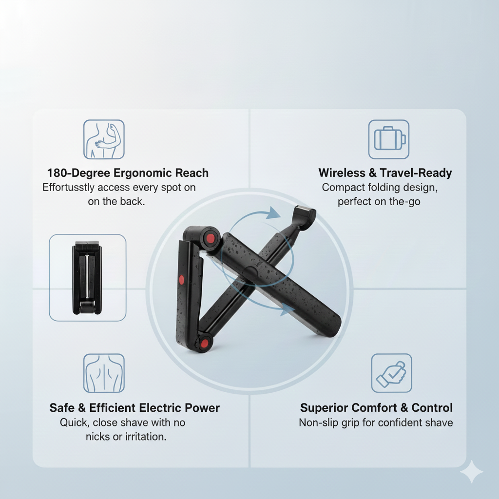 Most men struggle with unreachable back hair but not anymore. The Men Shave 180° Electric Back Shaver gives you full control with its extendable arm and skin-safe blades. No awkward angles, no asking someone to help just fast, clean grooming made simple
